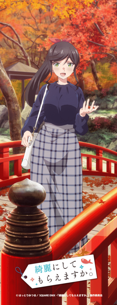 熱海梅園で紅葉を楽しむ金目さんを描いた、オシャレな版権に仕上がっています。
